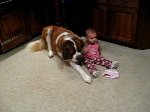 Dieser riesige Bernersennen Hund hat seinen persönlichen Kauknochen gefunden. Dem Kind scheint es anscheinend nichts auszumachen, dass der Hund ihn als Kauknochen benutzt. Scheint gut zu schmecken, solch ein kleines Kind. Vielleicht gefällt dem Hund ja der Geruch nach vollen Windeln?