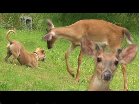 Dieser Hund hat es faustdick hinter den Ohren, denn er hat es auf ein kleines, süßes Reh abgesehen, was er am liebsten fressen würde, so scheint uns zumindest. Aber er reizt dieses Reh nicht nur irgendwie, sondern auf eine witzige Art und Weise. Schau dir das Spektakel an
